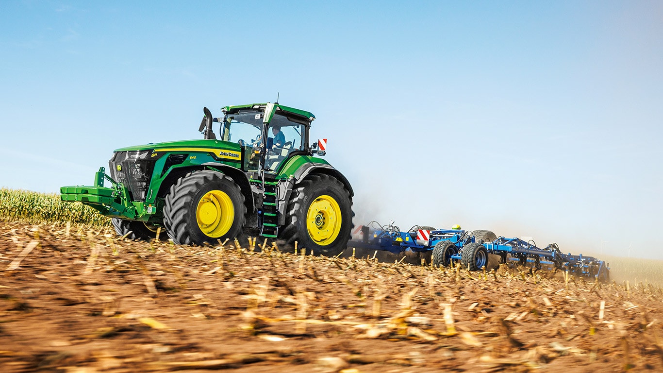 Nové traktory 8R s vysokou konskou silou poskytujú ťažnú silu, ktorú potrebujete pre najťažšie príslušenstvo. S IPM so špičkovým výkonom poskytuje motor JD14 až 634 k presne vtedy, keď je to potrebné pre špičkovú produktivitu v akýchkoľvek podmienkach. Jedinečná prevodovka eAutoPowr™ zabezpečuje plynulé zrýchlenie a až o 8 % lepší prenos výkonu v porovnaní so štandardnými plynulými hydromechanickými prevodovkami*. Nové traktory 8R s vysokou konskou silou sú vybavené zadnými pneumatikami s priemerom až 2,30 m, prednými pneumatikami s priemerom až 1,85 m a jednookruhovým systémom centrálneho tlaku v pneumatikách pre vynikajúcu ochranu pôdy, prenos výkonu a všestrannosť.