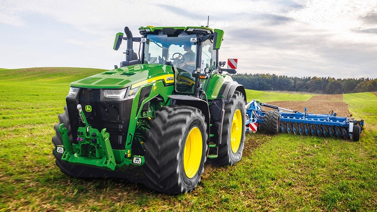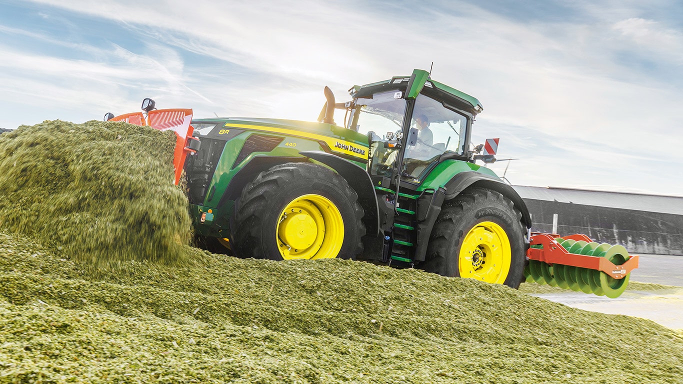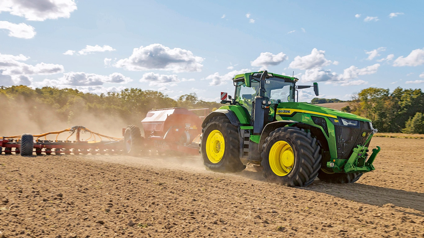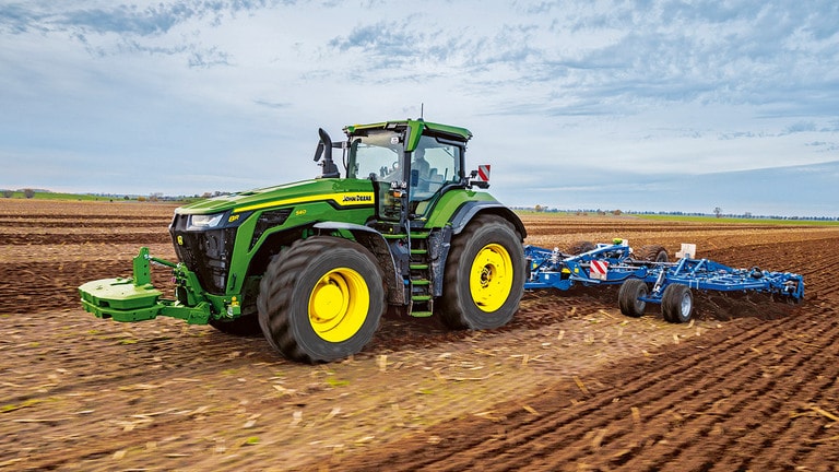 Nové traktory 8R s vysokou konskou silou poskytujú ťažnú silu, ktorú potrebujete pre najťažšie príslušenstvo. S IPM so špičkovým výkonom poskytuje motor JD14 až 634 k presne vtedy, keď je to potrebné pre špičkovú produktivitu v akýchkoľvek podmienkach. Jedinečná prevodovka eAutoPowr™ zabezpečuje plynulé zrýchlenie a až o 8 % lepší prenos výkonu v porovnaní so štandardnými plynulými hydromechanickými prevodovkami*. Nové traktory 8R s vysokou konskou silou sú vybavené zadnými pneumatikami s priemerom až 2,30 m, prednými pneumatikami s priemerom až 1,85 m a jednookruhovým systémom centrálneho tlaku v pneumatikách pre vynikajúcu ochranu pôdy, prenos výkonu a všestrannosť.